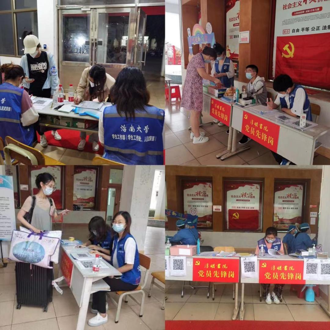 在书院11栋和14栋的宿舍楼宇里,每天都能看到身穿“蓝马甲”志愿者忙碌的身影,他们每天轮流值守,每天从早上6:30至晚上11:30值班17小时,组织学生扫码报到、登记新老返校学生信息、核查返校学生行程轨迹、办理报到注册、发放防疫物资、搬运行李等,让每位同学回来都有人接应,安全、安心、舒心回到自己的宿舍小家。