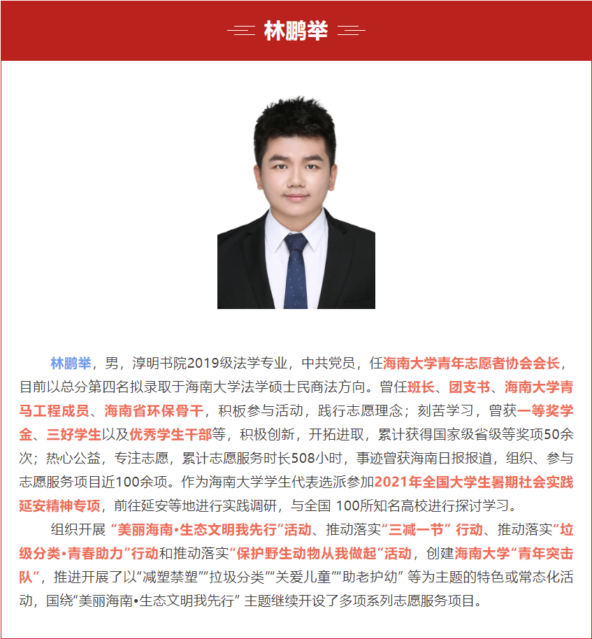 我院青年学子林鹏举荣获2022年度“海南省大学生自强之星标兵”称号