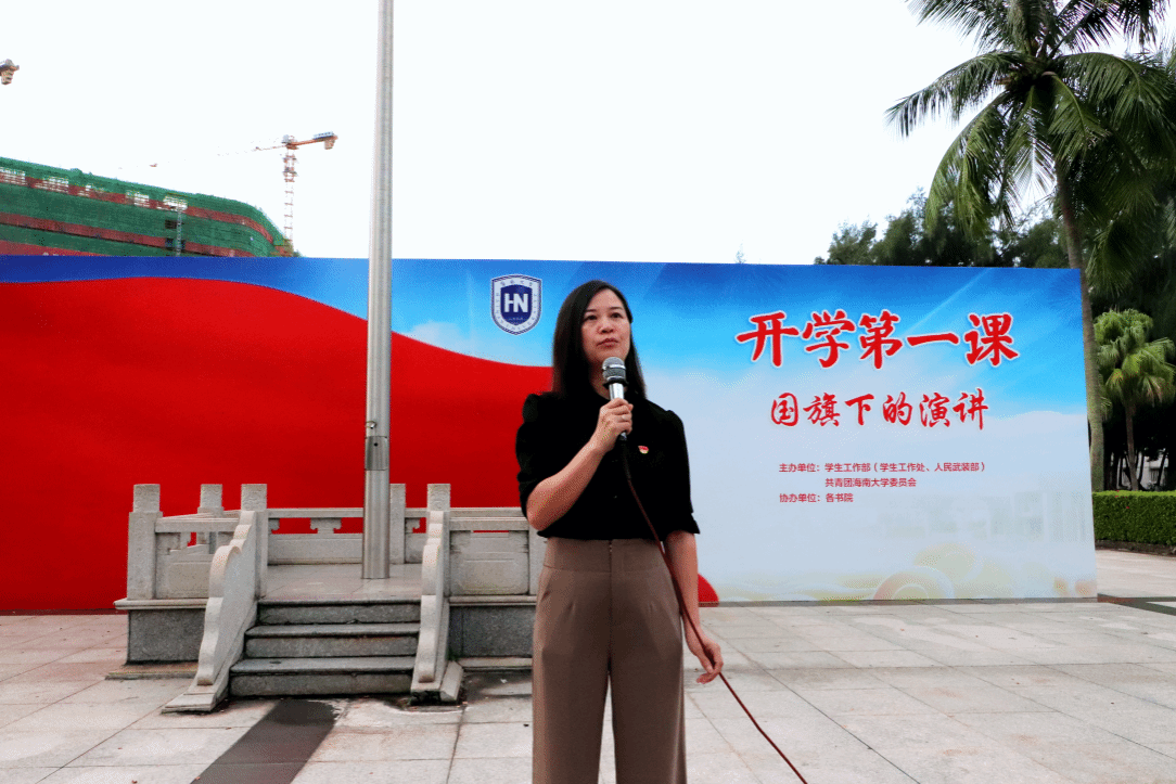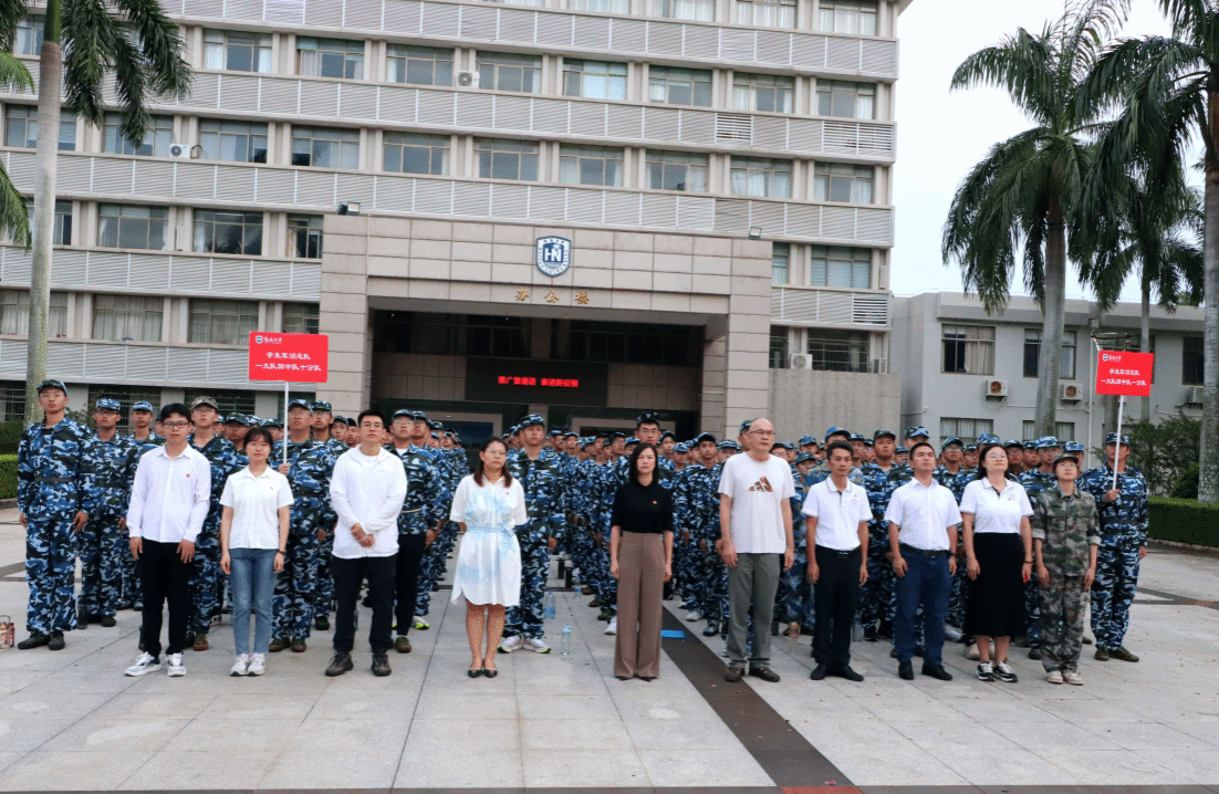 2023级新生代表韩昊轩作《牢记殷切嘱托,强国复兴有我——暨梦想从海大扬帆起航》主题演讲,他号召同学们要坚定理想、脚踏实地、刻苦学习、锐意进取、艰苦奋斗、无私奉献,努力成长为有理想、敢担当、能吃苦、肯奋斗的新时代好青年,做一个对国家和社会有用之人。