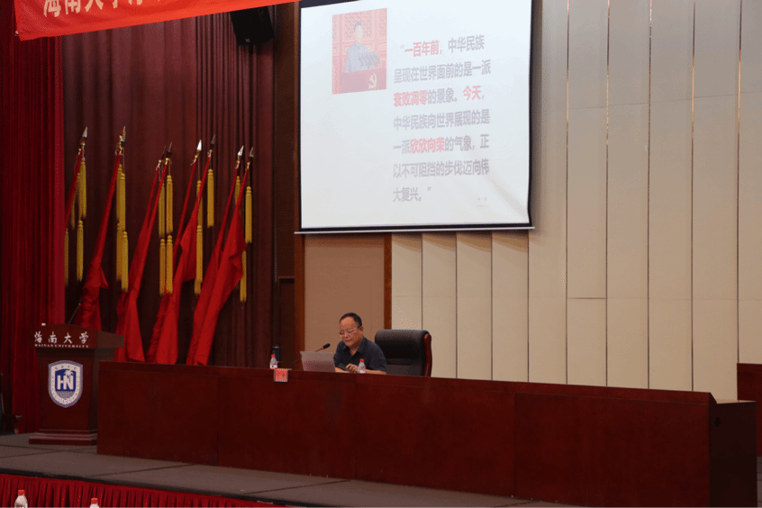 王善教授通过讲述党史,引导入党发展对象更加坚定理想信念,牢记初心使命,为中国式现代化建设不懈奋斗。他从讲述了中国共产党13名一大代表与58名早期党员的初心与人生开始,细致地梳理了中国共产党百年党史的四个历史时期以及海南改革开放的历史脉络。每个历史时期都凝聚着党和人民的艰苦奋斗,是中国共产党不断发展壮大的历史见证。他强调,有什么样的理想信念,就意味着以什么样的期望和方式去塑造和成就自身。