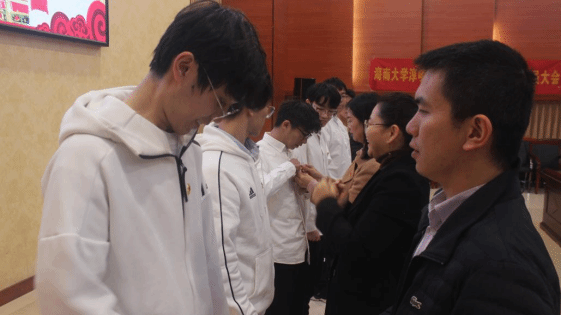党徽是党员的象征,佩戴党员徽章意味着党员将始终坚守党的原则,履行党员的责任和义务。书院老师为新发展党员代表佩戴党员徽章,告诫大家要牢记党员身份,以身作则,做好表率。佩戴党员徽章后,全体新发展党员进行了庄严的入党宣誓。