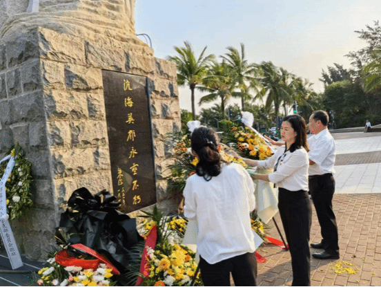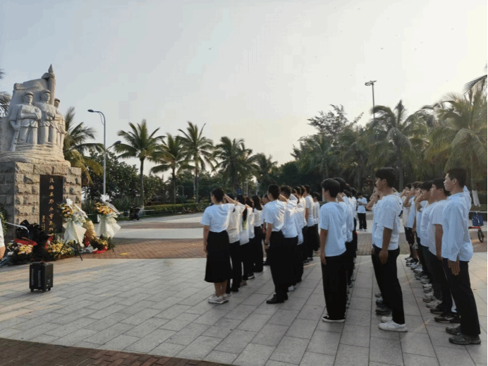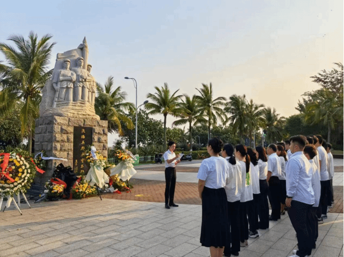 全体师生向为解放海南岛渡海作战英勇献身的烈士默哀,教师代表向革命英烈敬献花圈并整理了挽联。表达对先烈崇高的敬意与深切的缅怀。