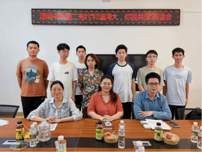 座谈会上,参会师生分别做了自我介绍,先由三位老师分享自己在刚入学时对海大的印象,听了老师的描述结合学生们目前的学习生活,大家都身临其境的感受到海大的发展迅速。新教学楼、宿舍楼、图书馆等设施的投入使用,极大地改善了学生的学习和生活环境。教学质量也得到了显著提升,学校邀请了各领域顶级人才,加强了校内的学术氛围,也为学生提供了更加优质的教育资源。此外,学生活动也愈发丰富多彩。学校举办了一系列文体活动、社会实践和志愿服务等,为学生提供了展示自我、锻炼能力的平台。