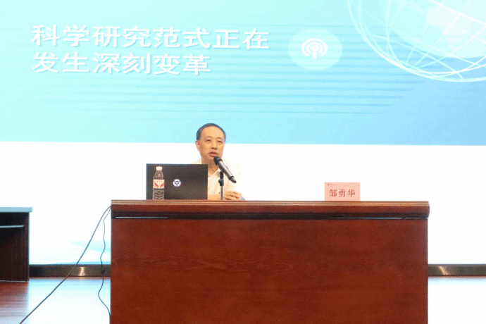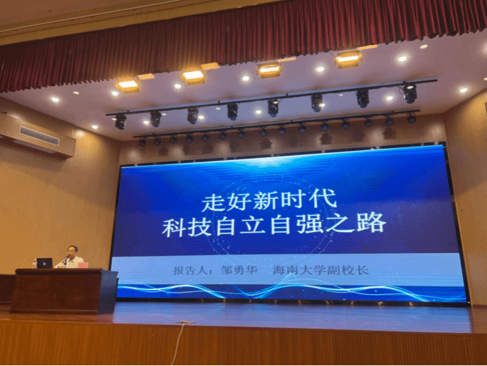 邹勇华副校长以《走好新时代科技自立自强之路》为题,给同学们上了一堂生动的思政课。他从“新质生产力”引入主题,重点从世界科技竞争日趋激烈、我国科技机遇挑战共存、加快科技自立自强步伐三个方面讲授,详细介绍了世界科技竞争激烈的现状、我国在科技领域取得的历史性成就和面临的挑战以及如何加快科技自立自强步伐的路径建议。他指出,青年科技人才是我国科技创新发展的生力军,要紧跟科技前沿,大力弘扬科学家精神,加快科技自立自强步伐。他勉励同学们要学好本领,敢于创新,勇于思考,积极参与科研和创新创业项目,不断提升创新能力,为国家科技创新奉献青春智慧。