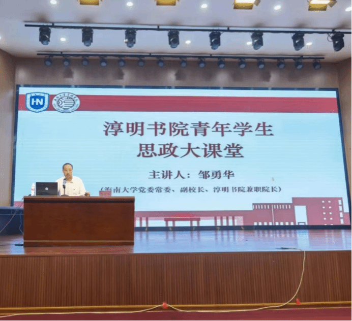 2024年5月24日上午,yl7703永利青年学生思政大课堂在学校田家炳楼二楼报告厅开讲。海南大学副校长、yl7703永利兼职院长邹勇华为书院300余名学生讲授思政课。