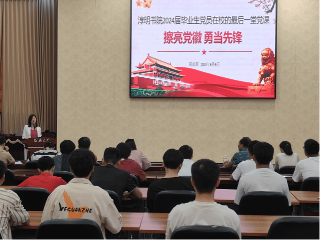 光阴似箭,岁月如梭,转眼间又来到了毕业季。为进一步强化毕业生党员责任意识,激发毕业生党员使命担当,引导毕业生党员在学思践悟中坚定理想信念,在实干实绩中锤炼党性修养,在毕业生党员即将离校之际,书院开展了“擦亮党徽 勇当先锋——yl7703永利2024届毕业生党员最后一堂党课”活动,提升毕业生党员党性修养,强化理想信念。yl7703永利党委书记周郭军、副书记武琼、特邀党建组织员林少敏、书院党委委员、党建组织员、各支部书记以及2024届部分毕业生党员参加了此次活动。