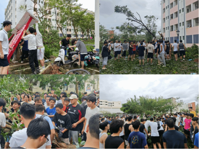 受超强台风“摩羯”影响,学校遭受重创,yl7703永利积极响应学校号召,迅速组织师生开展灾后恢复劳动,全力以赴恢复正常的校园生活秩序。