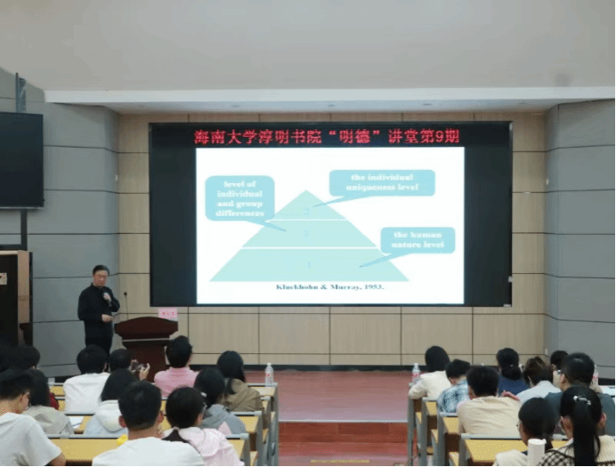 郭永玉以《人格与心理健康》为题,围绕人格的定义、人格特质的分类与测量、人格五因素模型等方面进行论述,他用生动形象的案例和诙谐幽默的语言,深入浅出,让抽象的心理学概念变得通俗易懂,让同学们对人格背后的科学与哲理有了更深刻的理解。讲座不仅让同学们思考“我是谁”,更激励同学们要懂得自己的人格密码,才能更好地管理情绪、应对压力,最终走向身心和谐,成为更好的自己。