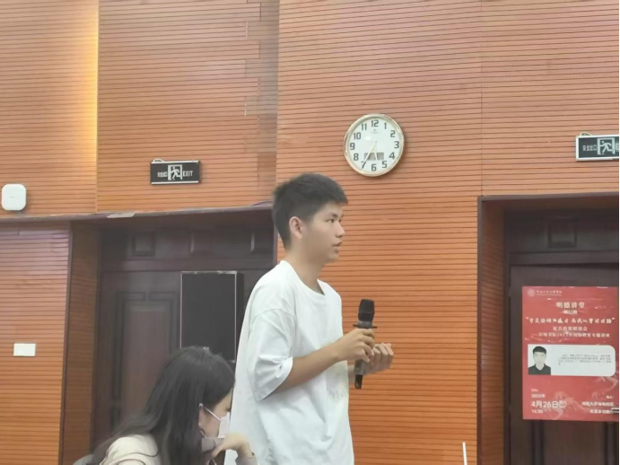之后,崔松以“参军吧 兄弟”为口号展开了极具感染力的征兵政策解读,他从大学生经济优待、参军发展路径、学业优待政策、参军退役保障、应征入伍条件、入伍基本流程六个方面为在场学生有效解读入伍政策。讲座内容详实、号召力强,激发了在座很多学生的共鸣,同学们踊跃提问,纷纷就自己关心的入伍条件、在军队中的发展路径以及退伍后的安置政策等问题踊跃提问。校友崔松一一进行了耐心细致的解答,消除了同学们心中的诸多疑虑,现场气氛活跃。