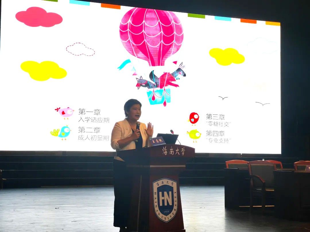 王昌纯老师聚焦入学适应期、成人初显期、“零糖社交” 策略、专业支持体系四个维度,结合当前高校新生群体典型案例,运用深入浅出的解析逻辑与生动具象的表达范式,精准解构了新生在入学适应期和成人初显期存在的环境转换、角色重塑、自我认知深化、责任意识建构过程可能诱发的适应性障碍、认知困惑、情绪失衡等现实问题。 她指出成长关键期的问题与困惑具有普遍性,需破除 “自我归因”“求助羞耻” 等认知壁垒,主动掌握专业支持资源的应用方法,在面临困境时及时借助专业力量进行干预。