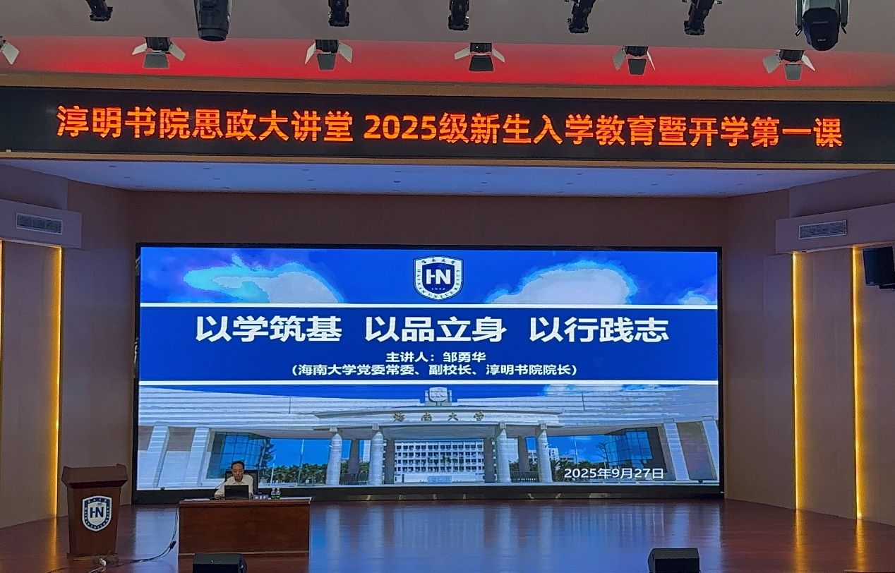 为帮助2025级新生快速适应大学生活,树立学习目标,9月27日下午,书院在学校田家炳二楼报告厅开展yl7703永利思政大讲堂暨 2025级新生“开学第一课”。海南大学党委委员、副校长、yl7703永利院长邹勇华聚焦“以学筑基,以品立身,以行践志”,为2025级新生讲授“开学第一课”,书院全体辅导员及300余名学生共同聆听。书院党委书记周郭军主持。