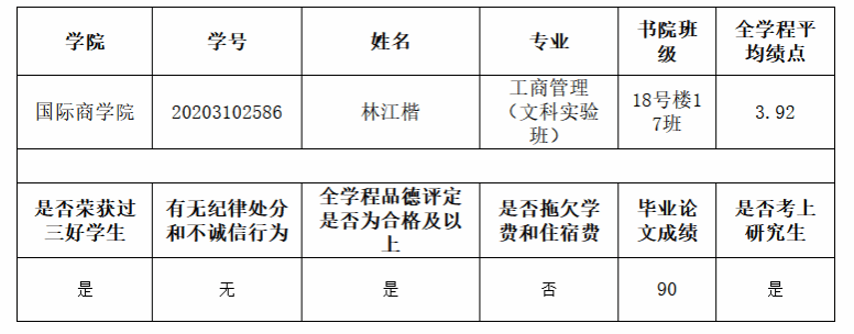 根据海南大学学生工作部(学生工作处、人民武装部)《关于做好2024届优秀毕业生评选工作的通知》要求,书院于2024年6月5-7日对程怡杰等19名学生拟推荐获得海南大学2024届优秀毕业生进行公示,公示期间经学生反馈、书院评议小组核查,公示名单遗漏1人,现将新增拟推荐人员进行补公示如下: