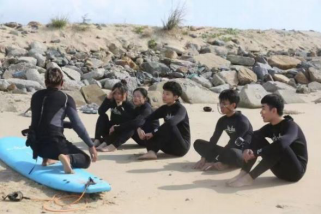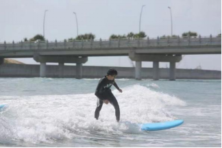 与同学在海南万宁学习冲浪运动