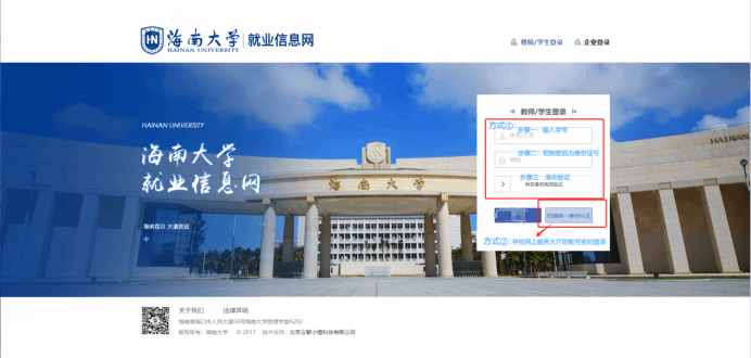 ①网页端:海南大学就业管理服务平台 https://jyxt.hainanu.edu.cn/a/login
